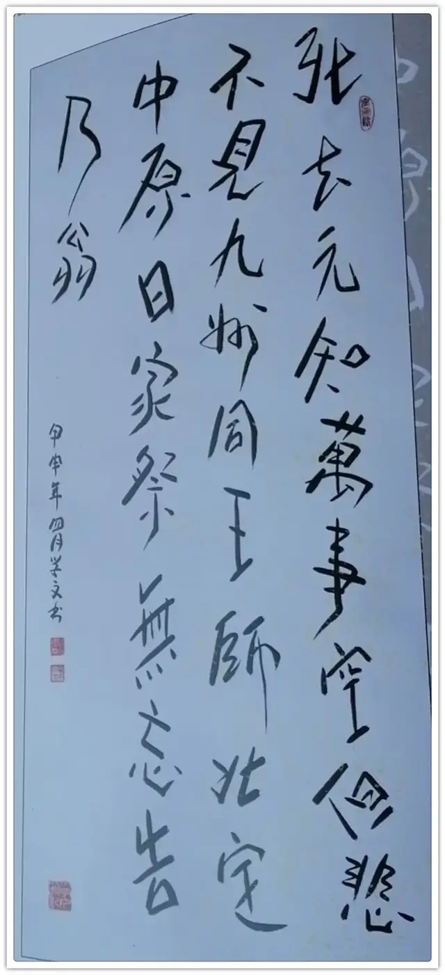 在成绩与殊荣面前,现在的学文仍一如既往的临帖、求教、探索、创作、学习、思考......学海无涯、勤奋进取、拼搏求实、在我国传统书法的沃土中,只要不断地努力,辛勤的耕耘,就一定能够收获出丰硕的成果。